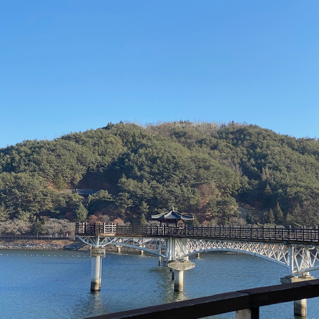 다리 맨 끝까지 걸어가면 정자가 나와요!