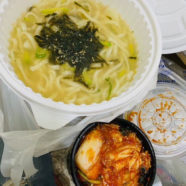 이렇게 손수제비와 충무김밥을 포장 해 왔어요~