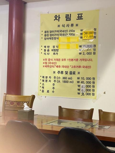 굴비에, 민물새우탕, 시골된장찌개, 계란찜, 장어구이,