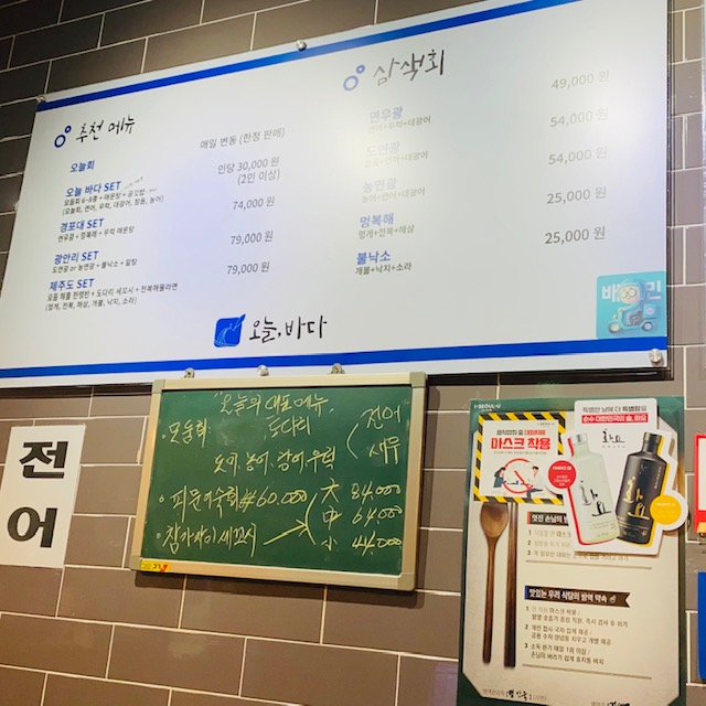여러메뉴가 있지만, 오늘의 제철 회와 해산물은
