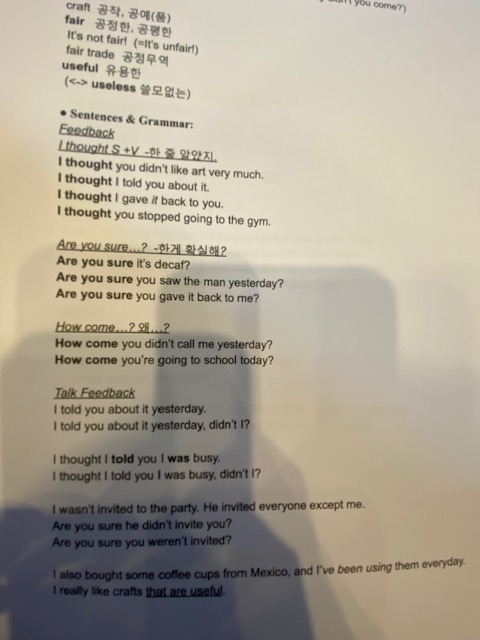 배운 회화 표현들도 정리되어 있으니