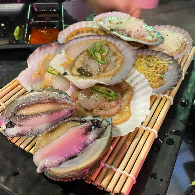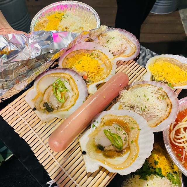 홍합탕, 떡볶이, 가리비, 백합? 바지락? 그런 조개들 ㅎㅎ