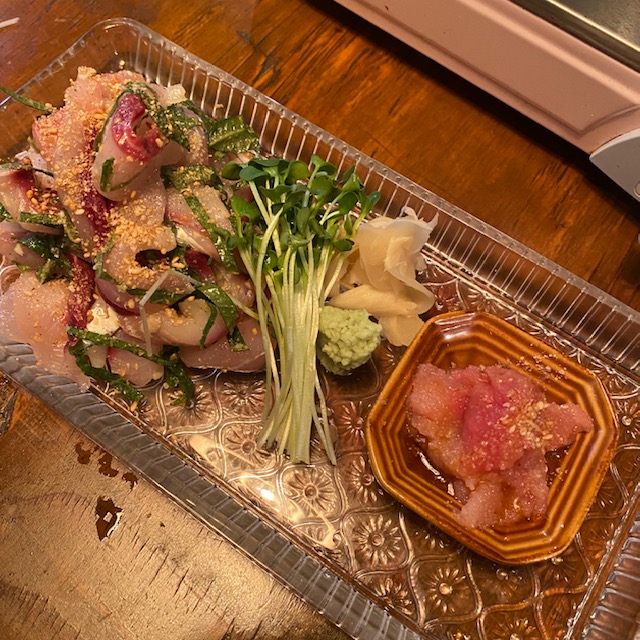 꼬소 회무침+ 와사비+ 간장쩔인초생강+ 명란+ 무순