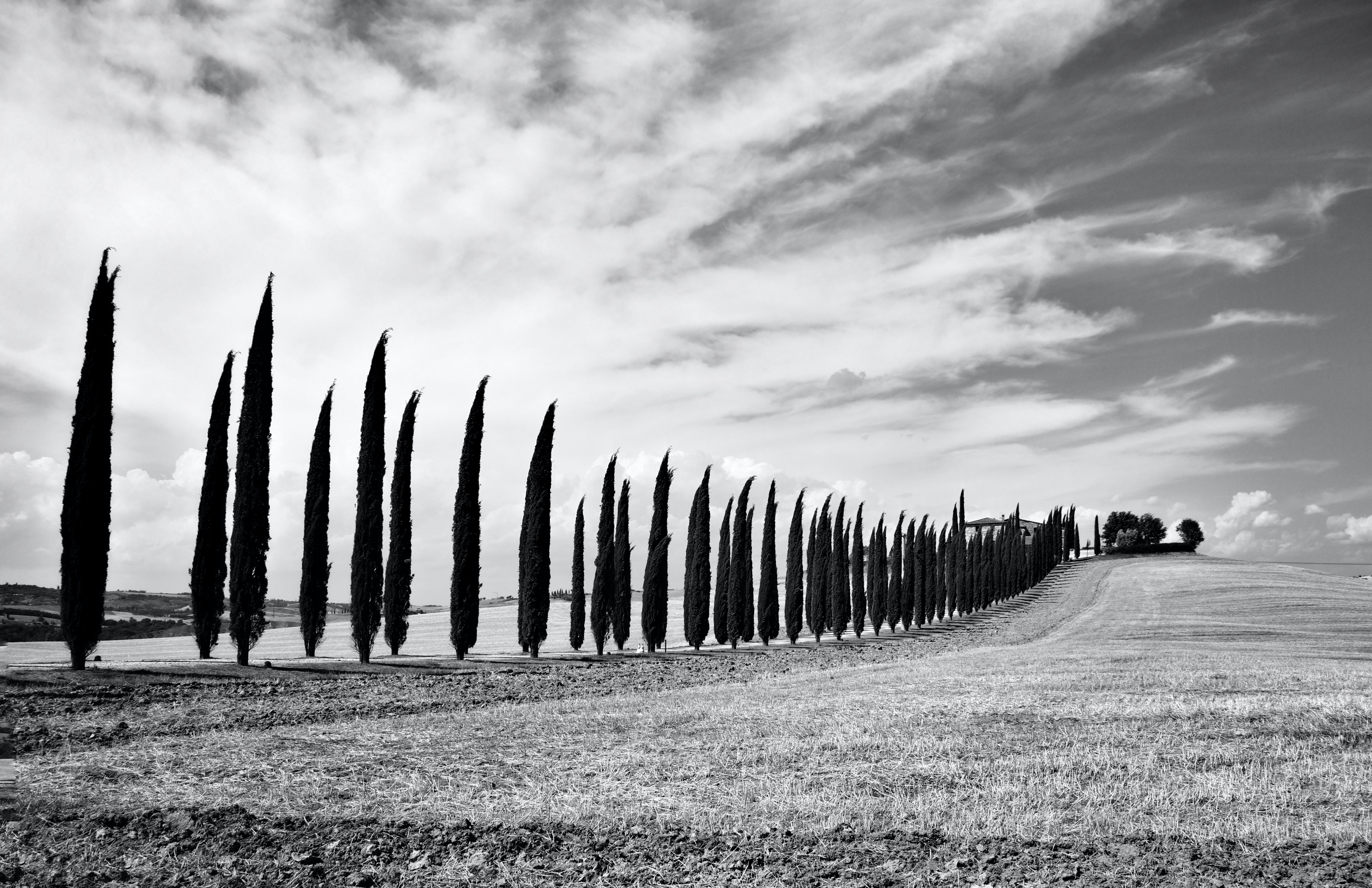 Each house has acres of space around it.